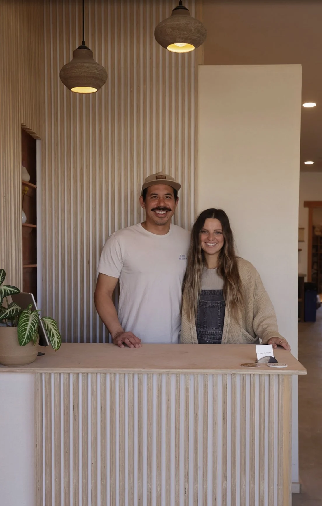 Brad’s journey began in high school when he discovered the magic of pottery with his very first wheel. Seeking a more laid-back lifestyle, he moved from South Bay to Leucadia, where he started with just six wheels in his garage and began teaching his friends in hopes to one day open up a ceramics studio. It was in that creative space that he met Ella.